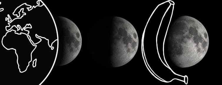 You can also prove that the Earth’s shadow cannot be responsible for the phases of the Moon by thinking about the shape of the Earth – surely it should always be a sphere. But note, for example, the different shape of a waxing crescent to the gibbous moon. If the Earth’s shadow were causing this then the planet would have to have a rather odd banana shape.