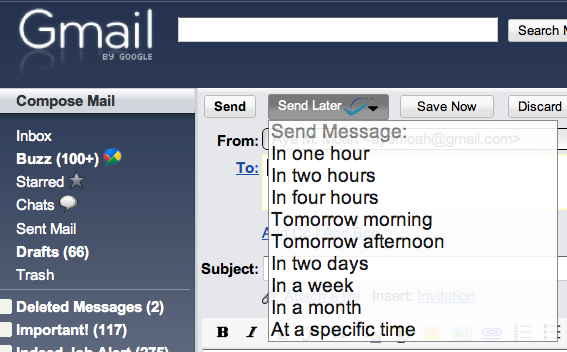 The send later feature is really useful because it means that you can deal with your mail and respond when convenient – even when you’re not ready to send. Examples might include those motivational and congratulatory emails during and after a big project deadline, or meeting reminders that include the proposed agenda.