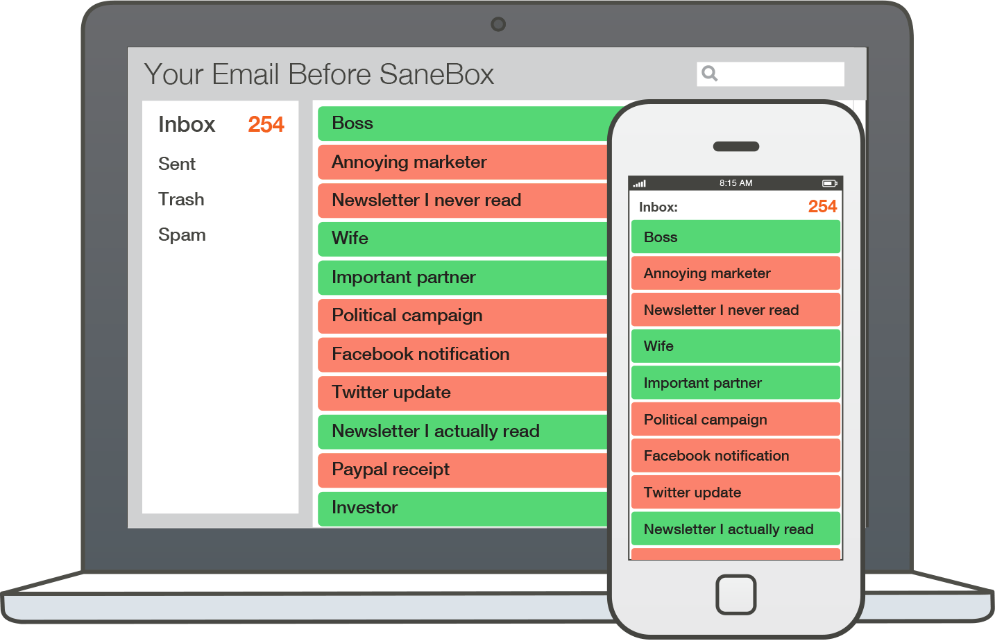 This is great for professionals who rely on receiving unsolicited emails from people or professionals who work with a fresh set of people frequently. If Sanebox gets it wrong, simply retrain it dragging the email from @SaneLater onto the right folder.