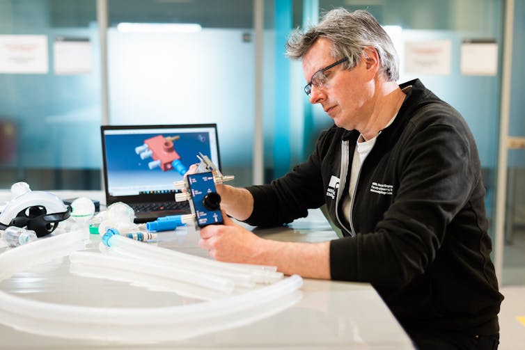 To alleviate this problem, a team of engineers from UCL (the university in London where I work) and Formula One engine maker Mercedes-AMG HPP have been working flat out to manufacture large numbers of a continuous positive airway pressure (CPAP) device. This machine, similar to those commonly used to treat sleep apnea, can support patients with severe breathing problems, freeing up ventilators for the most critically ill.