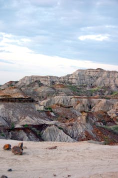 When our Centrosaurus died, its body fed other living things – tyrannosaurs, flies, beetles, then bacteria and fungi. But the process continued long after death. Microbes would have lived in its bones after they were buried under a Cretaceous floodplain, then when the sea rolled in and the dinosaur lay a hundred meters beneath the ocean floor, still later beneath an ice age glacier, and finally, just beneath today’s badlands.