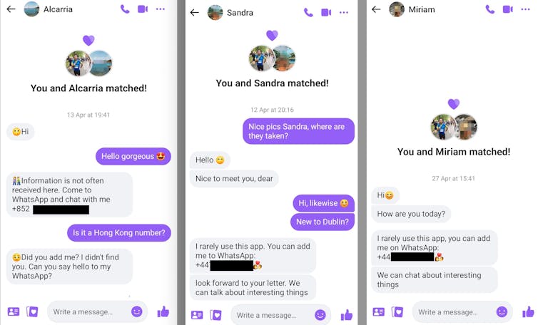 Within a few hours, I had a long list of attractive matches who all wanted to talk to me “about interesting things” – not on the app, but on WhatsApp. Interestingly, nobody sent me an Irish number (often UK or Polish), even though they all lived in Ireland, supposedly.