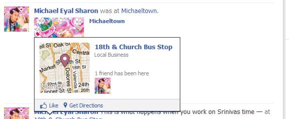 Just like that, the check-in will flow to your profile on Facebook.com complete with a Bing Map, a pin of your location and any commentary you’ve added to your check-in. Places also includes the ability to see where your friends have checked in, a link to get directions to a place (via Bing Maps) and a Like button for the respective place page.