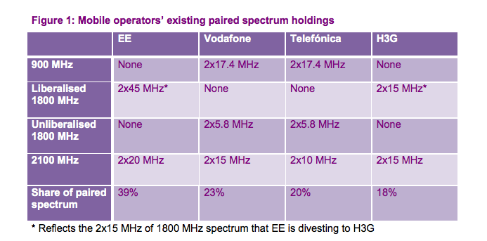 As you can see from the table below, each operator has different spectrum holdings. Allowing operators to provide 4G services on the spectrum they already hold, carriers won’t be limited to what they are able to secure from Ofcom’s current 4G auction.