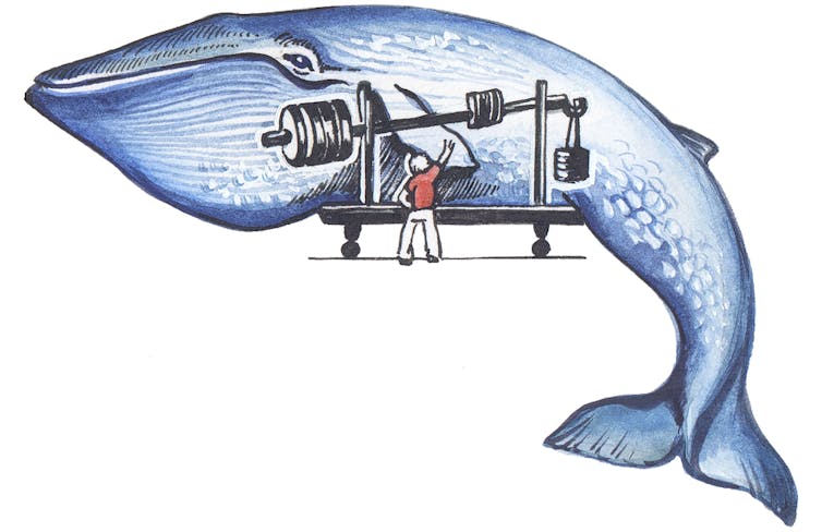 This is why we needed to develop a new non-invasive way of weighing whales. The solution colleagues and I came up with was to use a technique called photogrammetry – where the body size of the whales was measured from aerial photographs taken by drones.