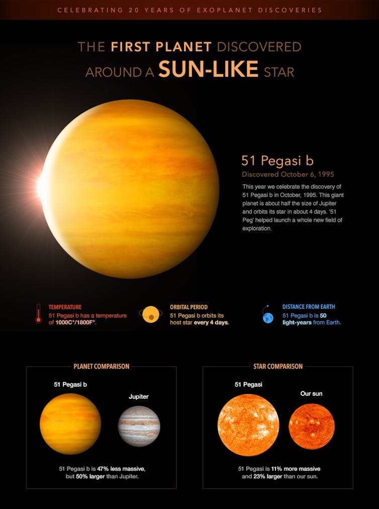 After they had found the first signs of a planet with such a short orbit, the two scientists made further observations and detailed analyses that confirmed the properties of what we now know of as the hot Jupiter, 51 Peg b. Despite the intense scrutiny the results were subjected to, their findings were quickly confirmed by other teams using other instruments.