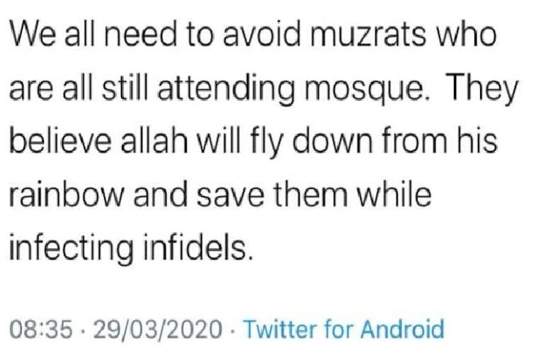 My colleague, Roxana Khan-Williams, and I have examined the impacts of COVID-19 on social media. We’ve found that COVID-19 has been used by the far-right to peddle Islamophobic hate.