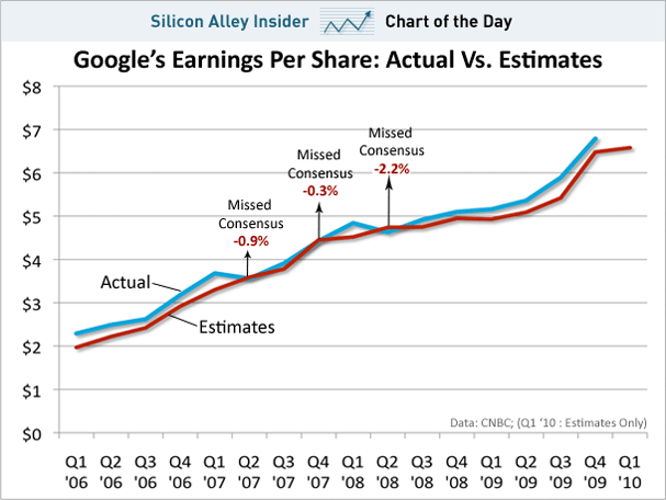 Below is a graph of Google’s EPS estimates compared to their actual EPS.