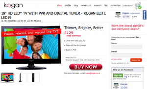 Kogan’s UK presence is a limited launch with 11 items (TVs, a video camera and 2 SatNavs). The SatNavs are identical apart from one is UK-only and the other is for UK and Europe. The UK site will get more products in-line with the Australian site soon and Kogan fully expect to extend to more territories too.