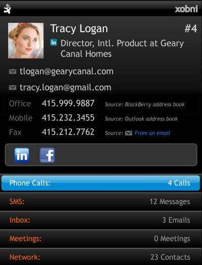 The launch of Xobni Mobile on the BlackBerry platform is an important milestone for the company, and we has made this even more compelling by powering it with Xobni One. This new service is the foundation for all our future products, and is the result of a significant investment from our product and engineering teams.”